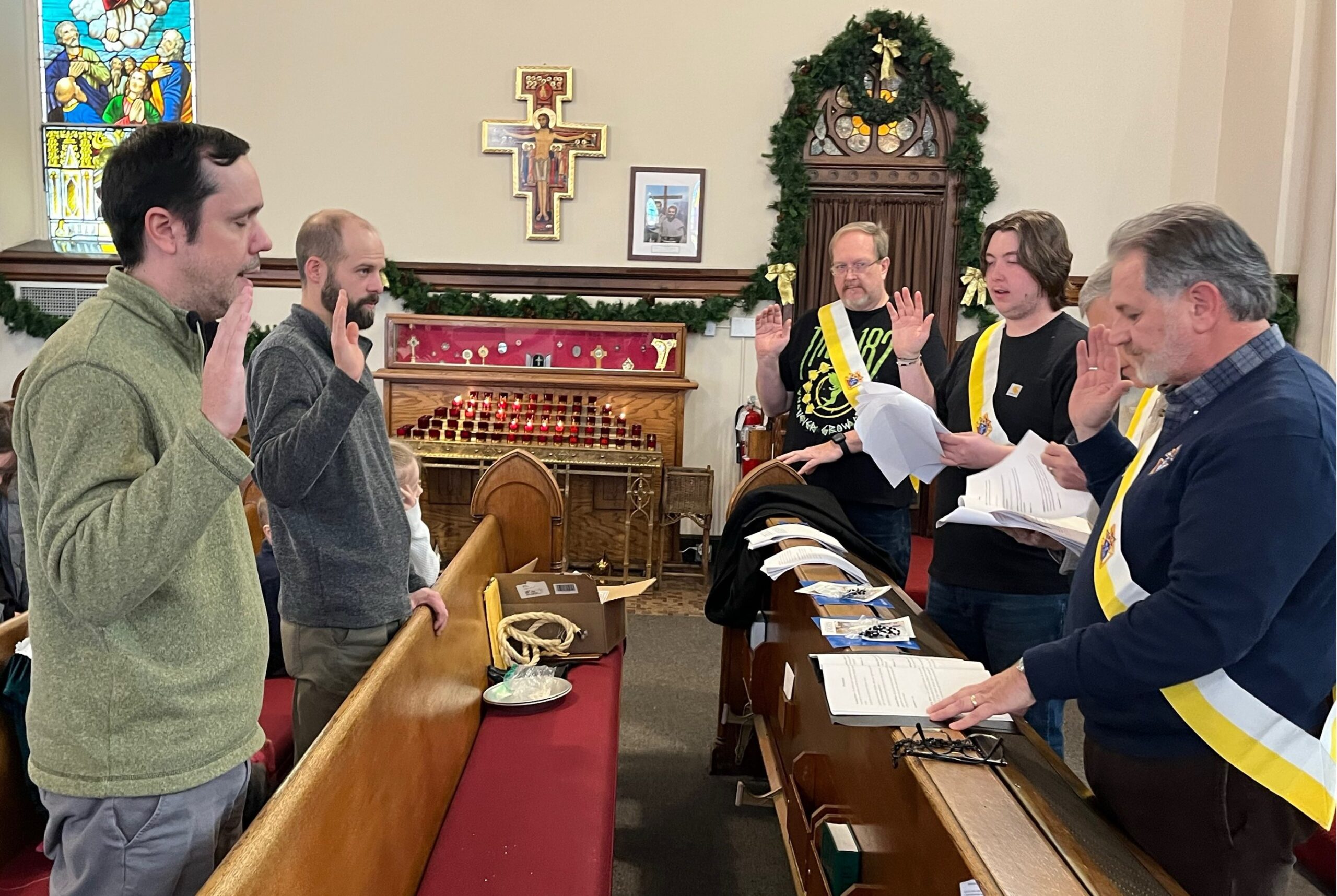 On Sunday, December 14th, 2025, Allouez Council 658 conducted an Exemplification of Charity, Unity, and Fraternity for two new members: Judah Kennedy and Ian Schroeder. In addition, Brother Knight Chris Mandle attended the Exemplification and advanced to become a 3rd Degree Knight.
